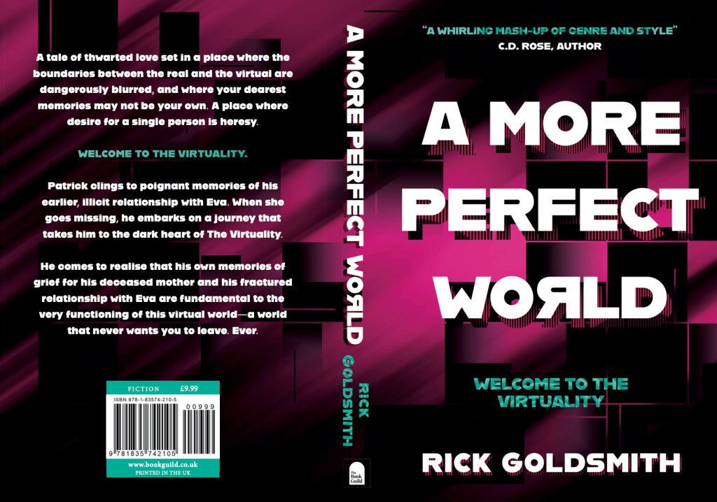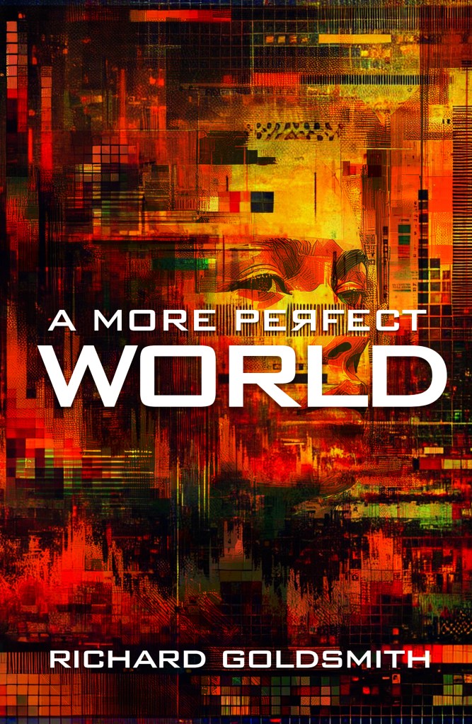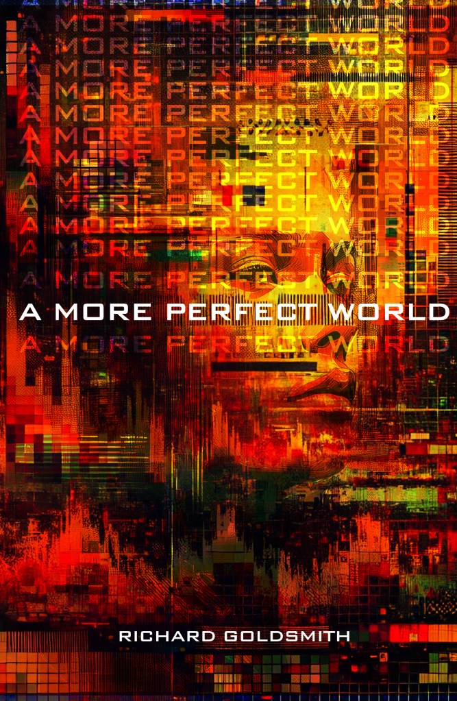 This led me to try inverting the ‘Rs’ in the title ‘A More Perfect World’ to give that same feeling of a glitch in coding, or a mistake being repeatedly looped. But visually it felt like too much. Instead a single inversion of the last ‘R’ in ‘World’ or ‘Perfect’ looked better and wasn’t too confusing. My friend, Innes Jones, a designer whose work I adore and who has done a lot of Catcher Media’s graphics over the years, said he’d make up some spec designs. I sent all of the above to The Book Guild and after some time they informed me that Innes’ designs weren’t suitable. It was to be a long wait before I saw the final cover.